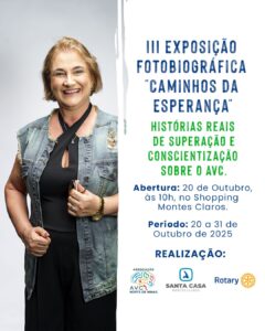 MONTES CLAROS – Até o 31 de outubro, o Montes Claros Shopping recebe a terceira edição da Exposição Fotobiográfica “Caminhos da Esperança”, uma iniciativa da Associação AVC Norte de Minas em parceria com a Santa Casa Montes Claros e o Rotary Club de Montes Claros Teresa de Calcutá. A mostra dá visibilidade a histórias de superação de pessoas que convivem com o Acidente Vascular Cerebral (AVC), destacando o poder da reabilitação, da empatia e da valorização da vida.