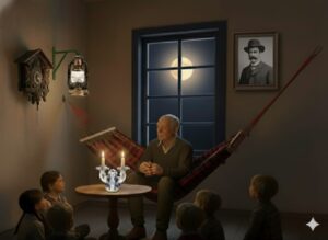 Também era o cenário perfeito para a contação de histórias de assombração. Vovô Nenê levava seres fantásticos para o ambiente das caçadas que ele conhecia como poucos. As palavras acendiam medos, sombras ganhavam corpo, o silêncio se tornava cúmplice. O coração disparava, perdido no escuro. Só voltava ao compasso normal quando a energia elétrica retornava, rasgando a noite e devolvendo luz à casa centenária.