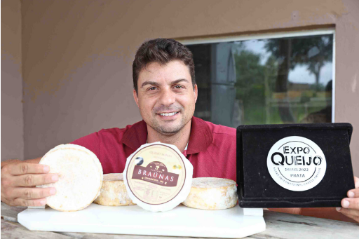 Ewerton produz 20 peças por dia, numa operação que envolve quatro pessoas, uma delas a mãe, dona Maria Geralda: “Tudo é feito de forma artesanal, seguindo as normas exigidas pelos órgãos fiscalizadores, o que resulta em um produto de qualidade, com muito valor agregado”, comemora. Para garantir a qualidade do queijo, a família dele e as outras dezenas de famílias produtoras passaram por capacitação. Motivado pelas políticas de incentivo à agricultura familiar do município e pela ampliação das fronteiras para comercialização dos seus produtos, Ewerton decidiu ampliar o negócio e passou a receber turistas na Fazenda Braúnas, onde apresenta a produção de queijos, a rotina da fazenda, e ainda oferece um café colonial com degustação do queijo em várias fases de maturação, além de quitandas típicas da região, tudo produzido na fazenda.