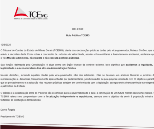Na nota, Ângelo também defendeu o diálogo institucional. “O diálogo e a colaboração entre os Poderes são essenciais para a governabilidade e para a construção de um futuro melhor para Minas Gerais. O TCE-MG reitera seu compromisso com a fiscalização independente e republicana, sempre com o objetivo de servir à população mineira e fortalecer as instituições democráticas.”